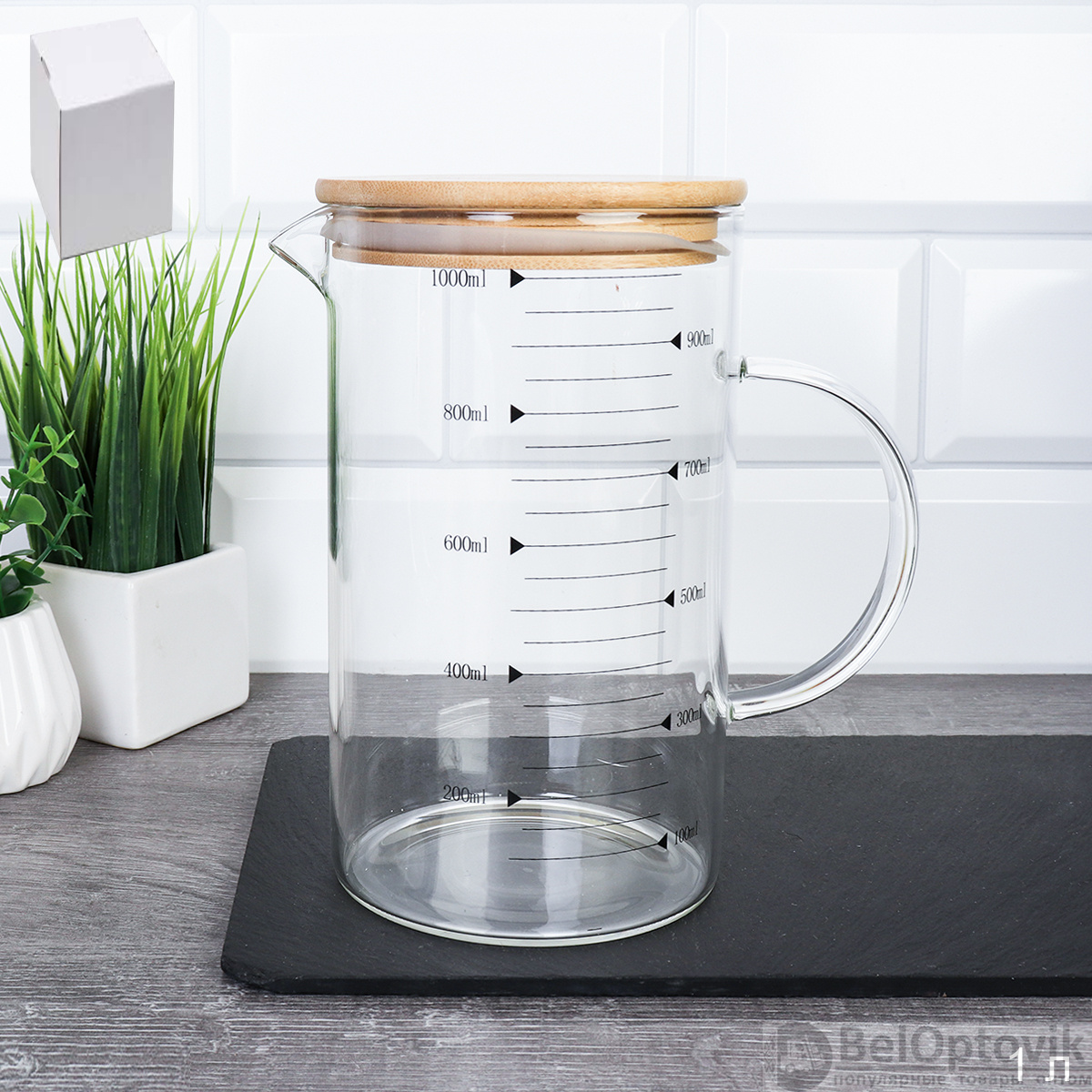 Кувшин мерный 1000 мл / LCWJ103 /уп 48/ Бамбуковая крышка