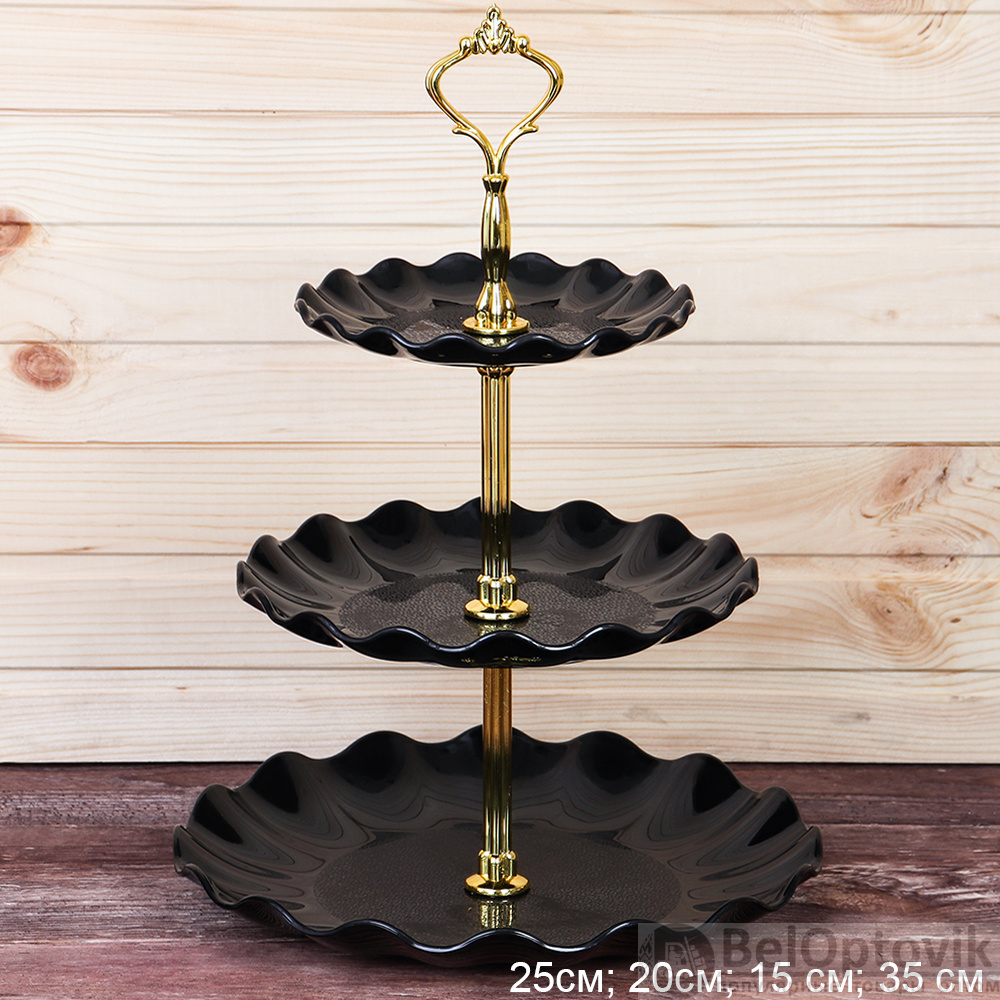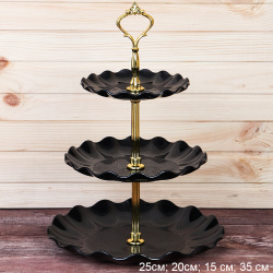 Ваза для фруктов 3-х ярусная 15/20/25 Круг Волна черная / D-1251 /уп 72/ Пластик
