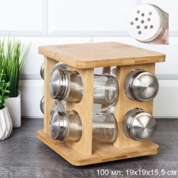 Набор для специй 9 предметов 100 мл 19х19х15,5 см/ КТ-ОС-03 /уп/ бамбук
