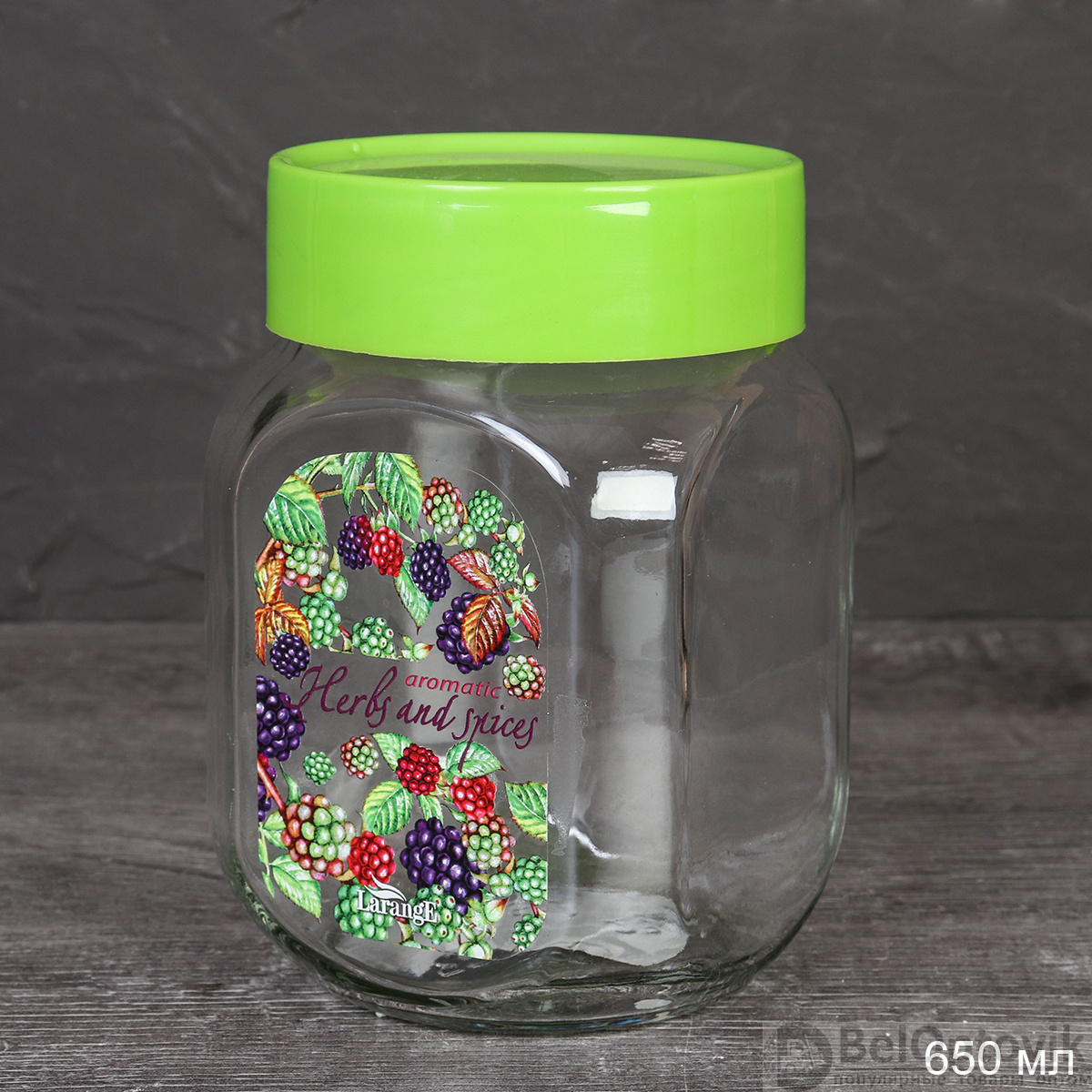 Стеклянная банка с винтажным рисунком "Ежевичный микс" украсит кухонные полки. Герметичная крышка сохраняет свежесть чая, кофе или специй.