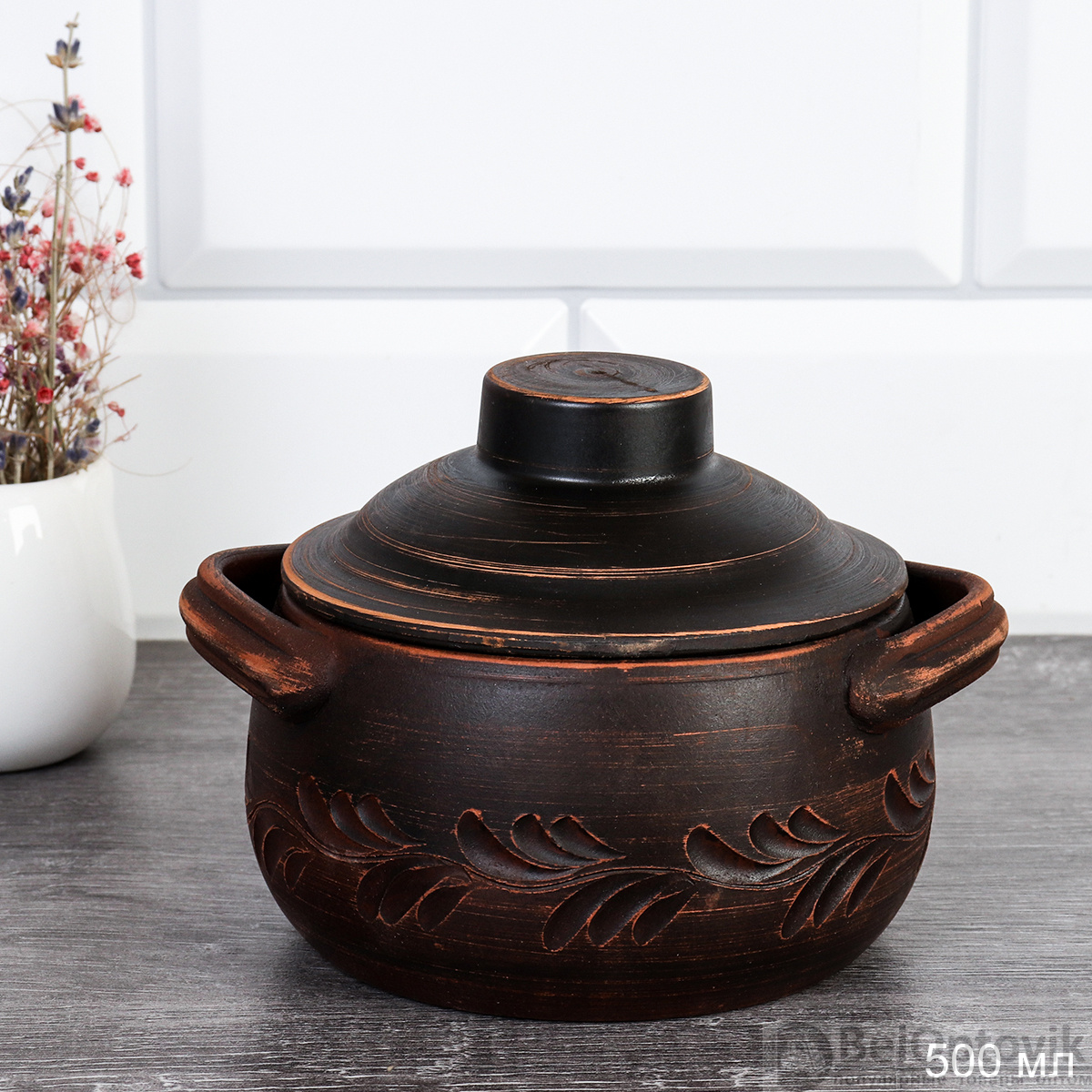 Керамический горшок для запекания объемом 0,5 л с удобными ручками: