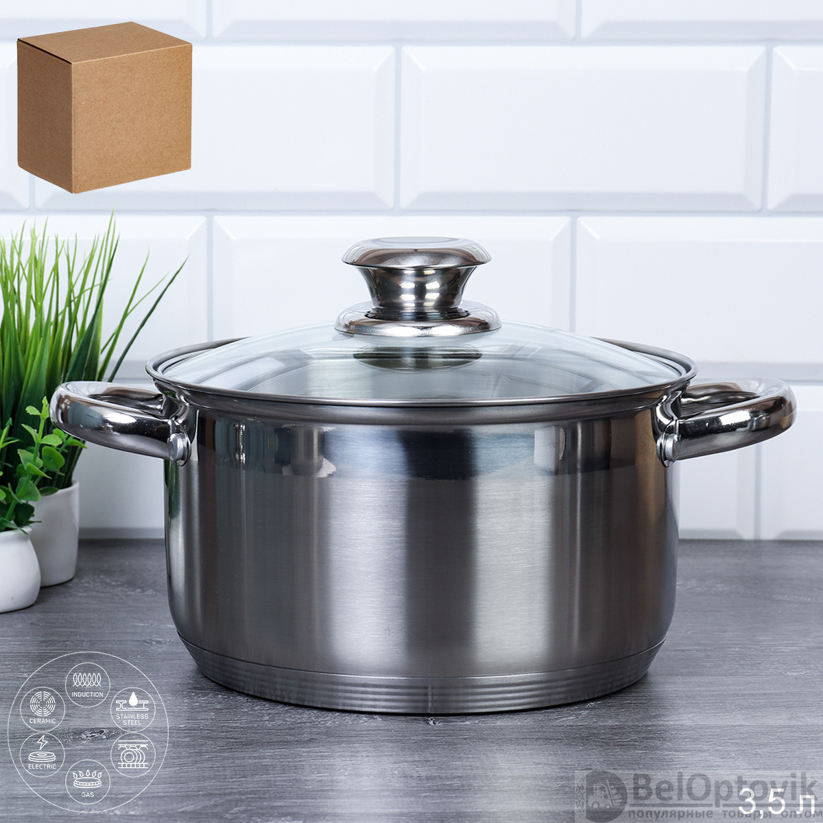 Кастрюля 3,5 л Ария / FGL-3.5 /уп 1/индукция/ круглые ручки/ гофрокороб/ 0,673/ 1,018