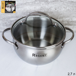 Кастрюля 2,7 л 18х11 см Apple B / 93-B-2 /уп.6/ крышка стекло,зерк.пол. Regent/ Регент