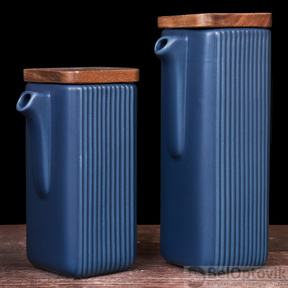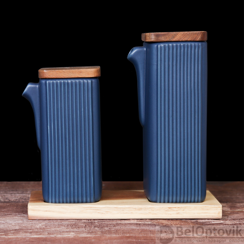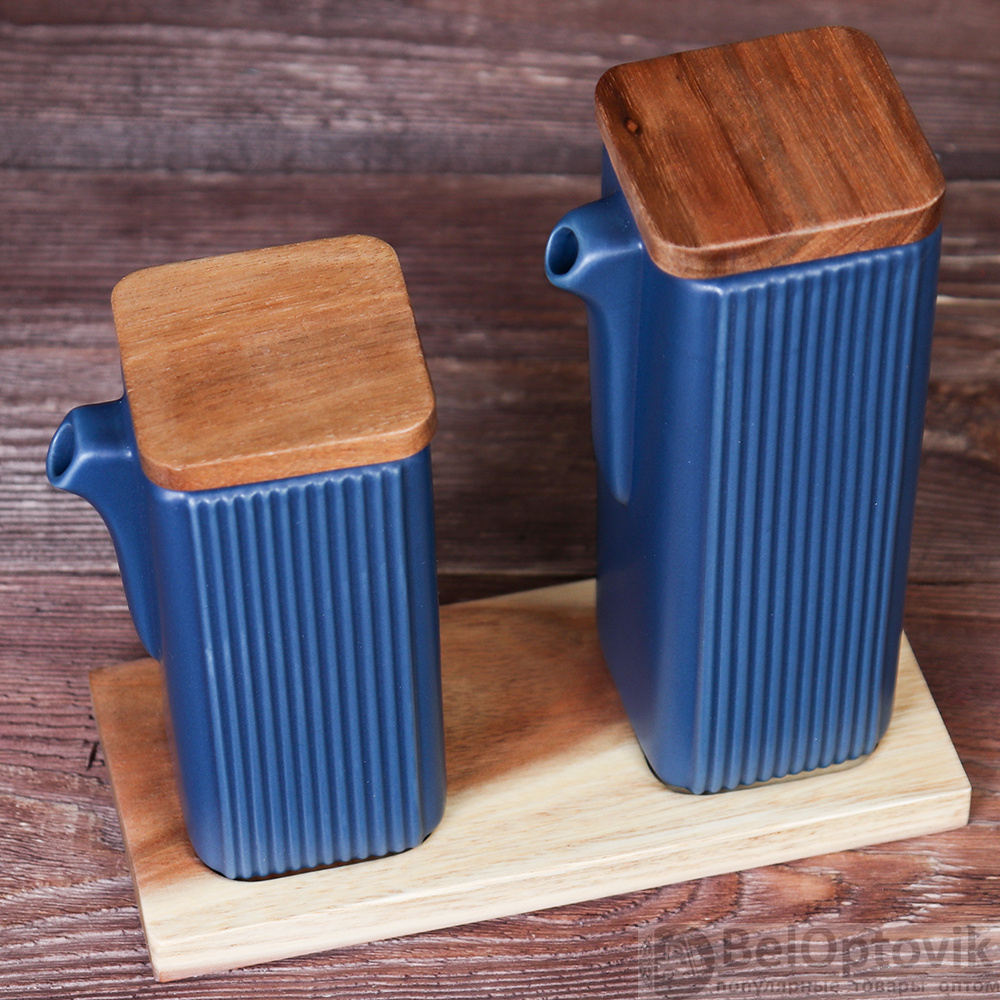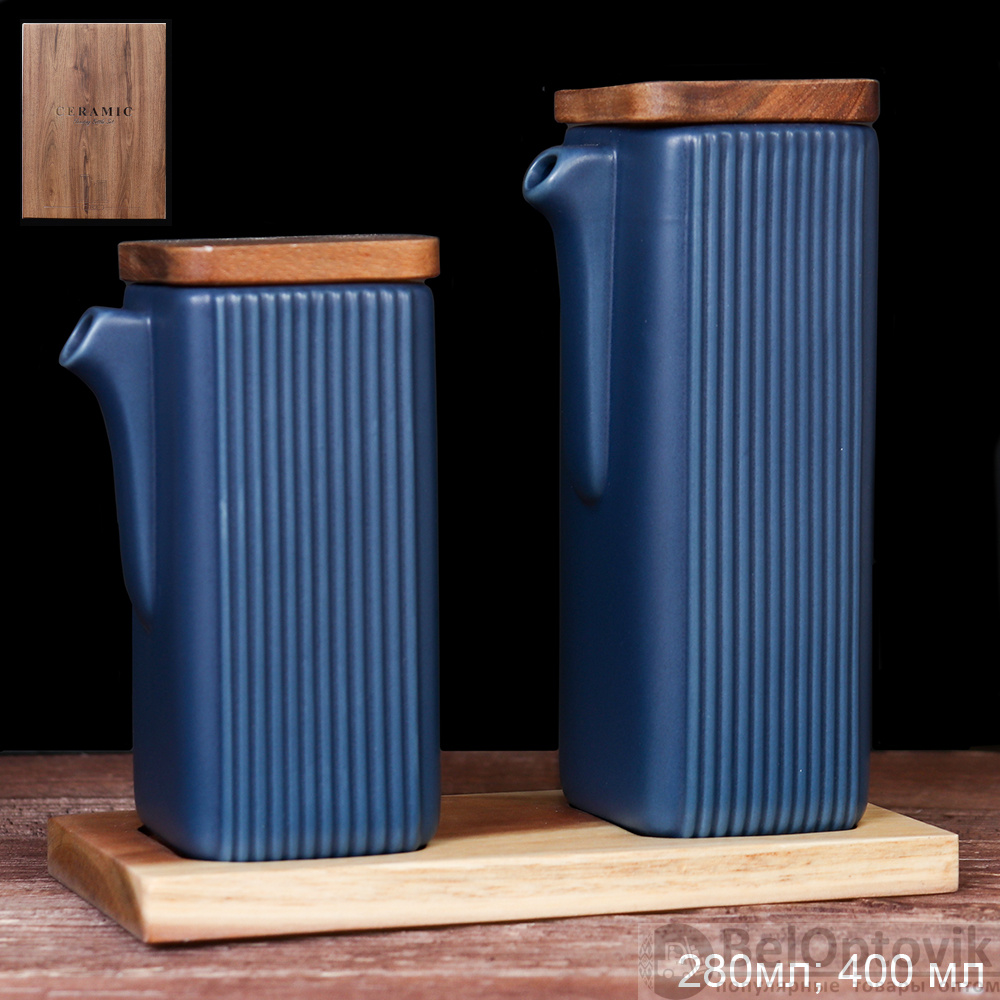 Кувшин соусник для жидких специй 2 штуки 400 мл 280 мл / I9003-blue /уп 16/ на подставке синий
