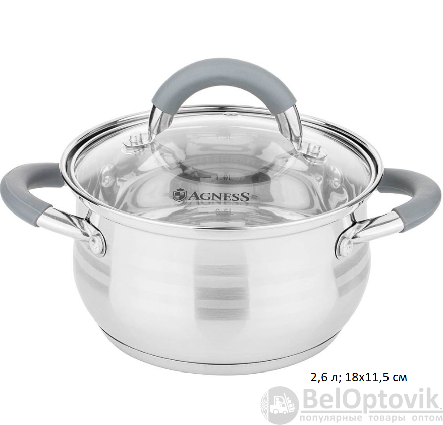 Кастрюля Agness classic 2,6 л / 937-431 /уп 6/ со стеклянной крышкой
