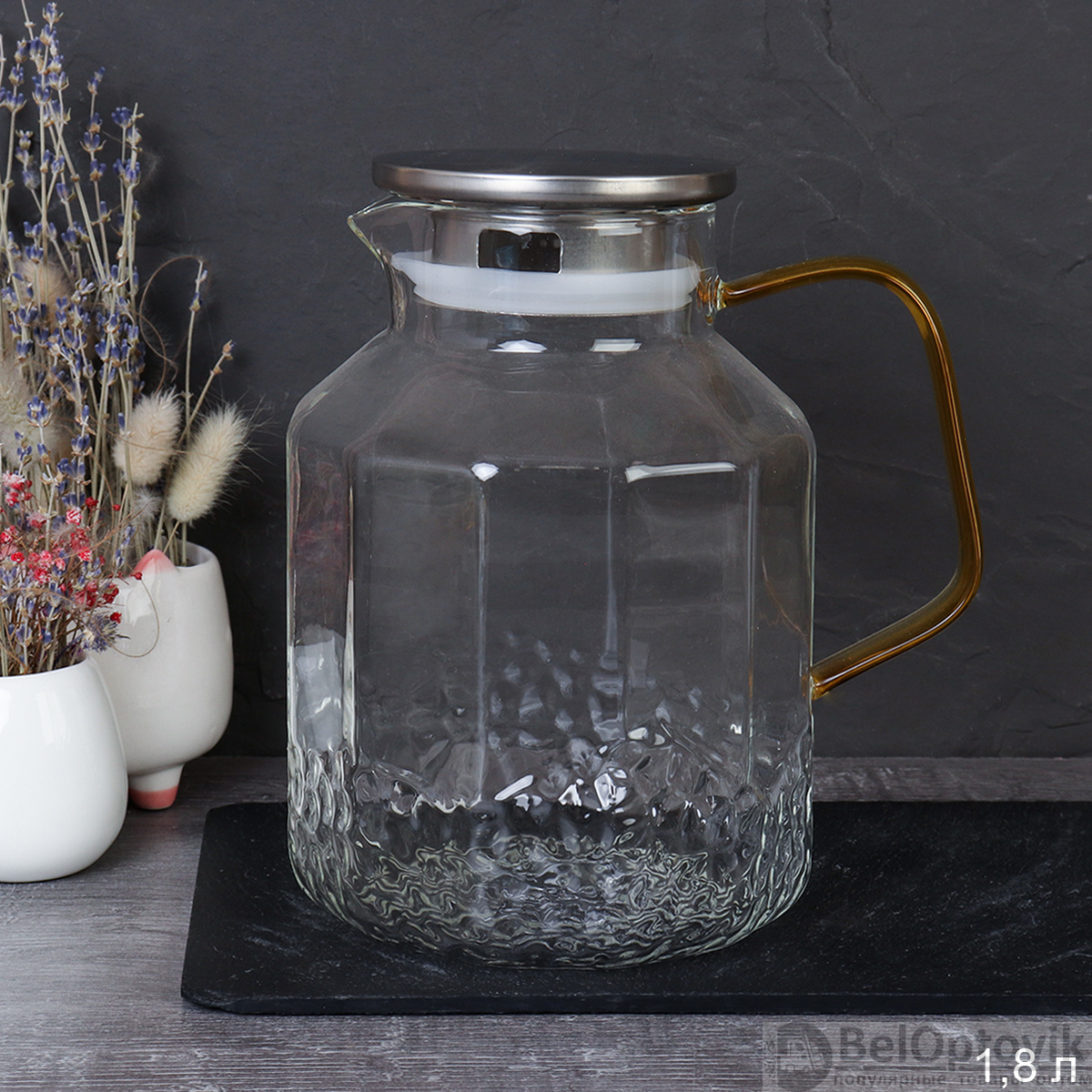 Кувшин 1800 мл стеклянный / LCTP12901 /уп 36/ Металлическая крышка