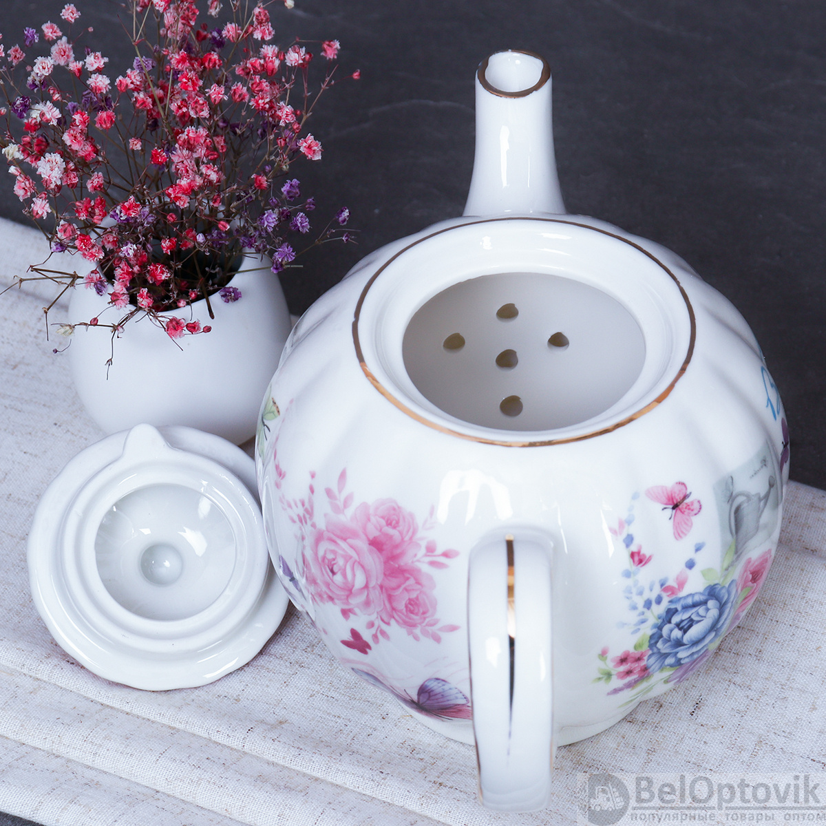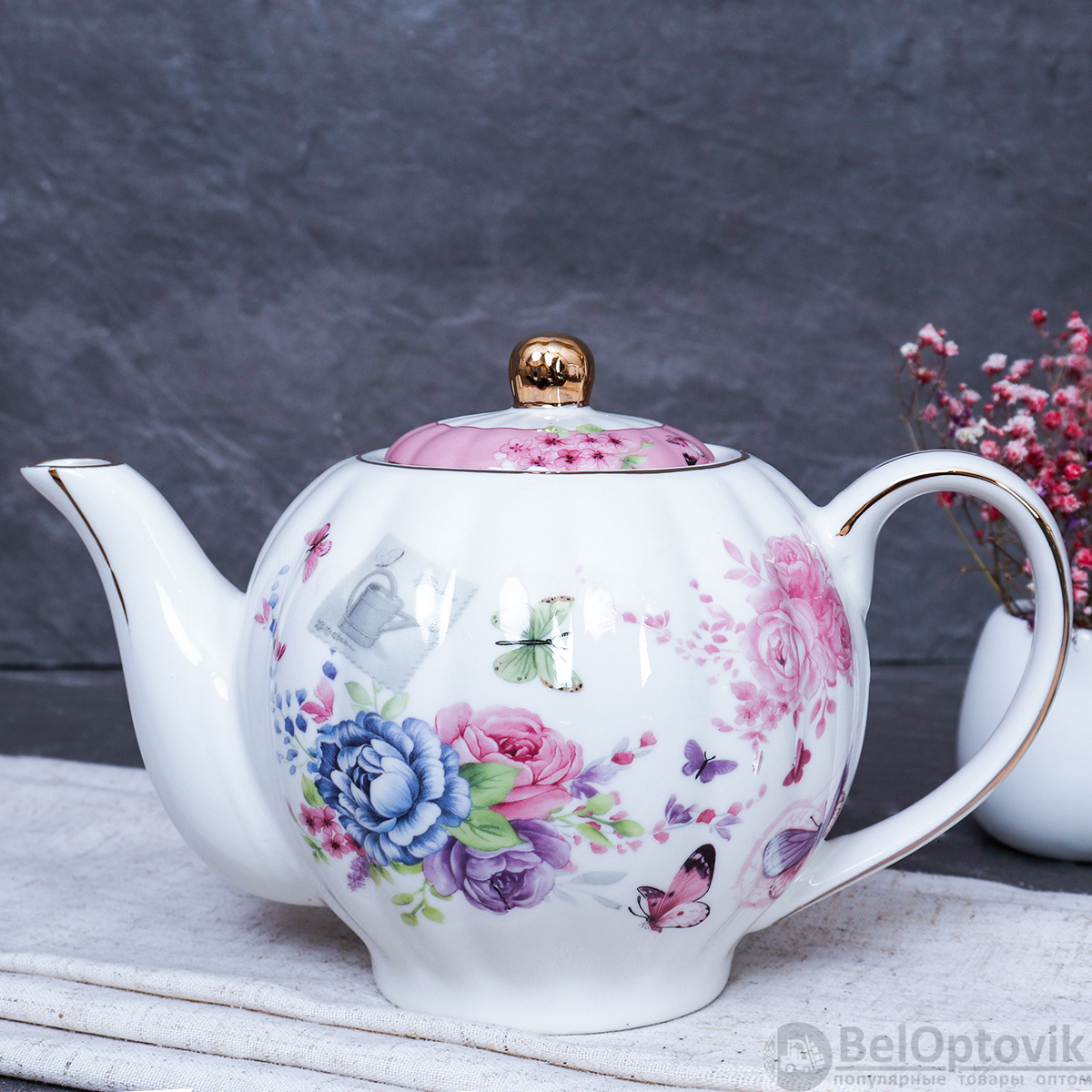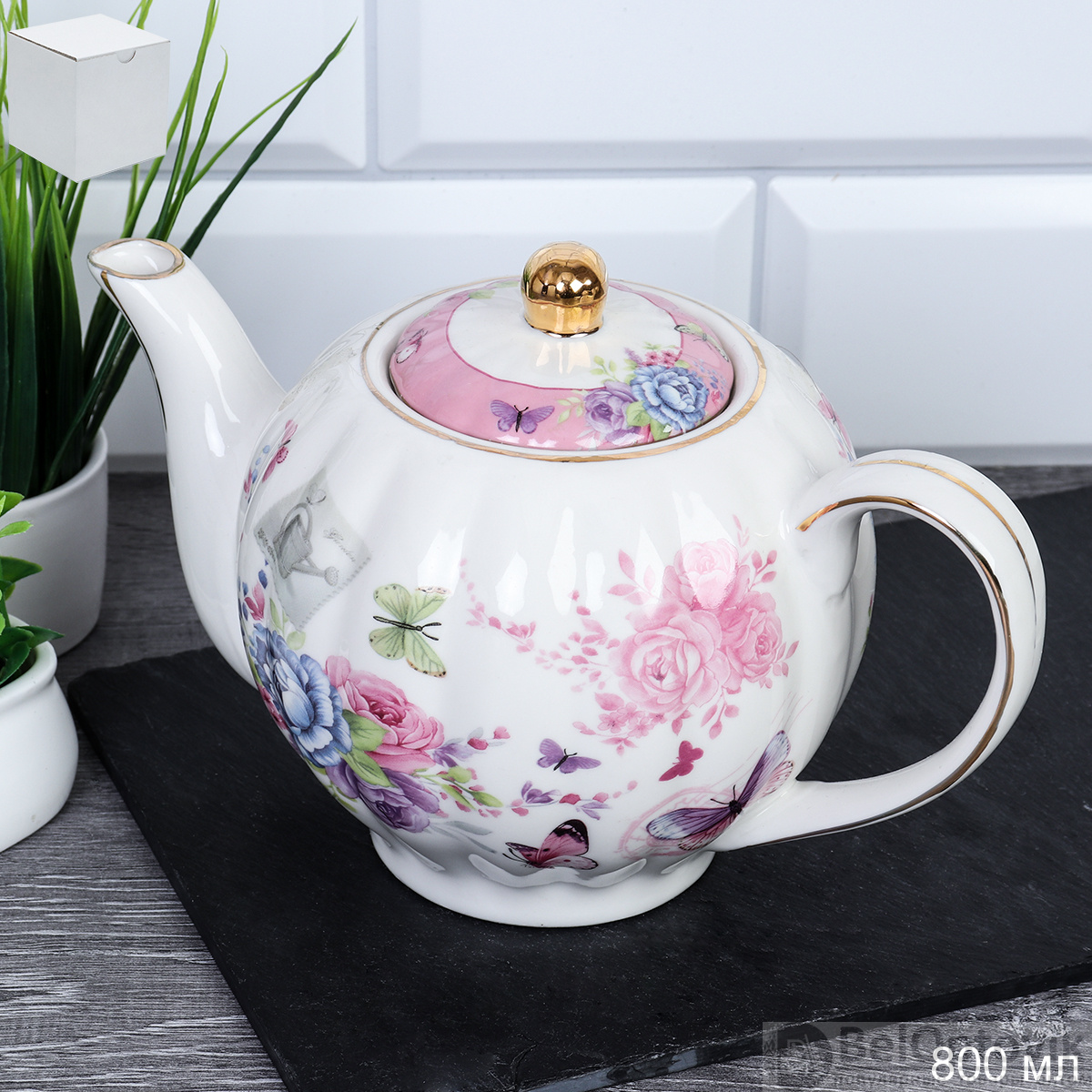 Костяной фарфор премиум-класса с ручной росписью. Объем 800 мл оптимален для заваривания листового чая на 4-5 персон.