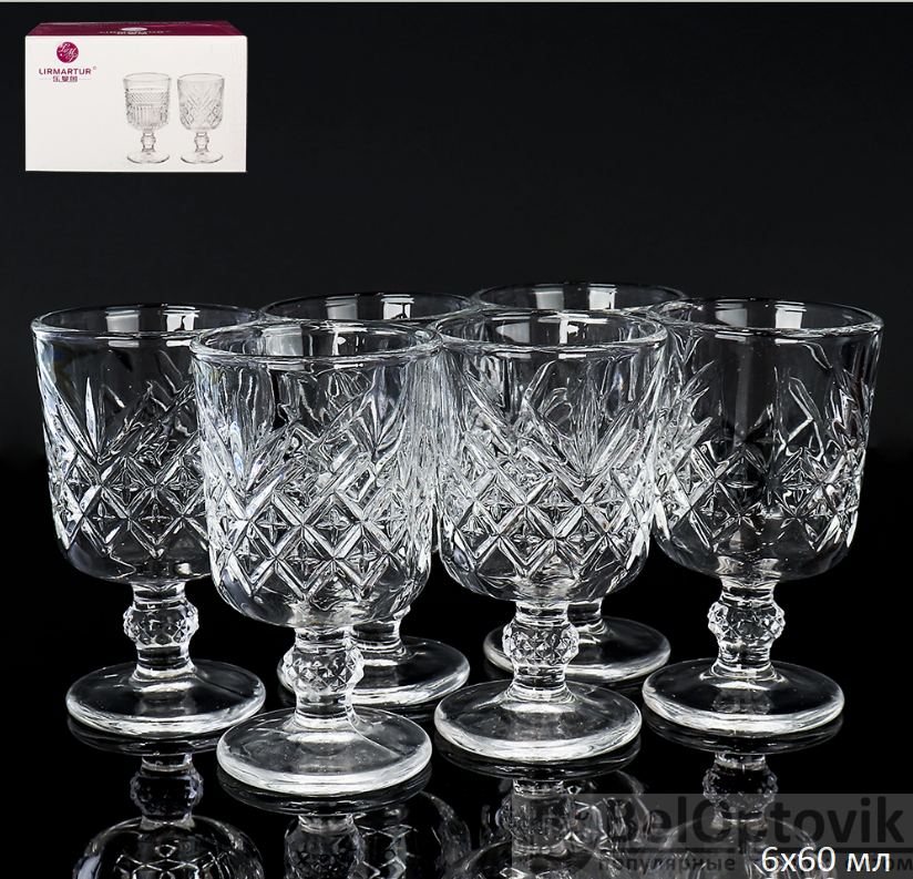 Рюмка 6 штук 60 мл на ножке прямая / F207-1D /уп 24/