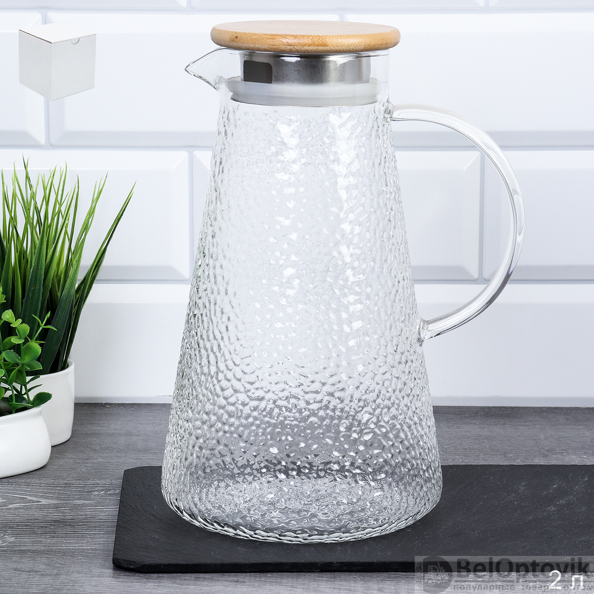 Стильный кувшин объемом 2000 мл с натуральной крышкой. Особенности: