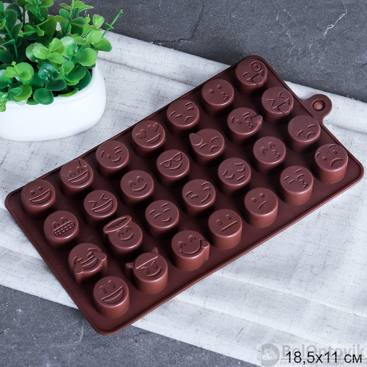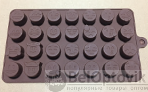 Форма для конфет мармелада и льда 28 ячеек силиконовая Смайлики / HL-341 / уп 300/ 19,8*11*1,5 см