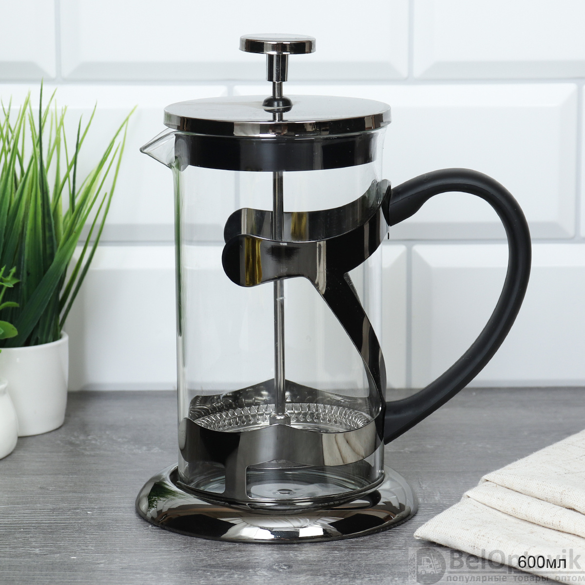 Френч-пресс на 600 мл позволяет готовить насыщенный кофе или чай без примесей. Преимущества: