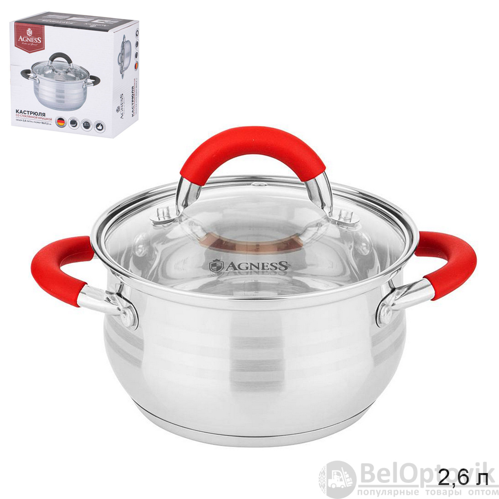 Кастрюля Agness classik 2,6 л / 937-421 /уп 6/ со стеклянной крышкой