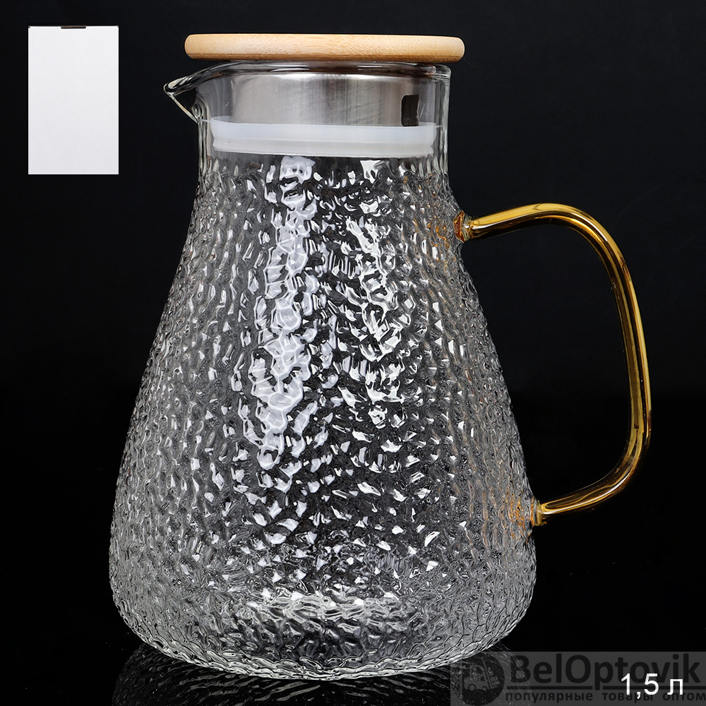 Кувшин 1500 мл стеклянный / LCWJ7703 /уп 36/ Бамбуковая крышка