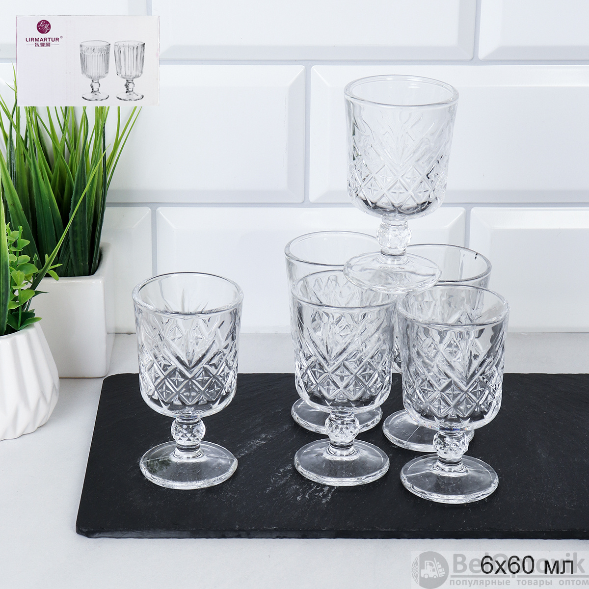 Рюмка 6 штук 60 мл на ножке прямая / GPN601D /уп 24/