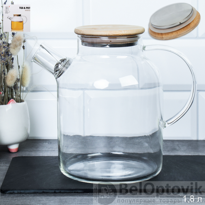 Объем 1800 мл и бамбуковая крышка делают модель идеальной для подачи напитков. Акционная цена действует на оптовые закупки.