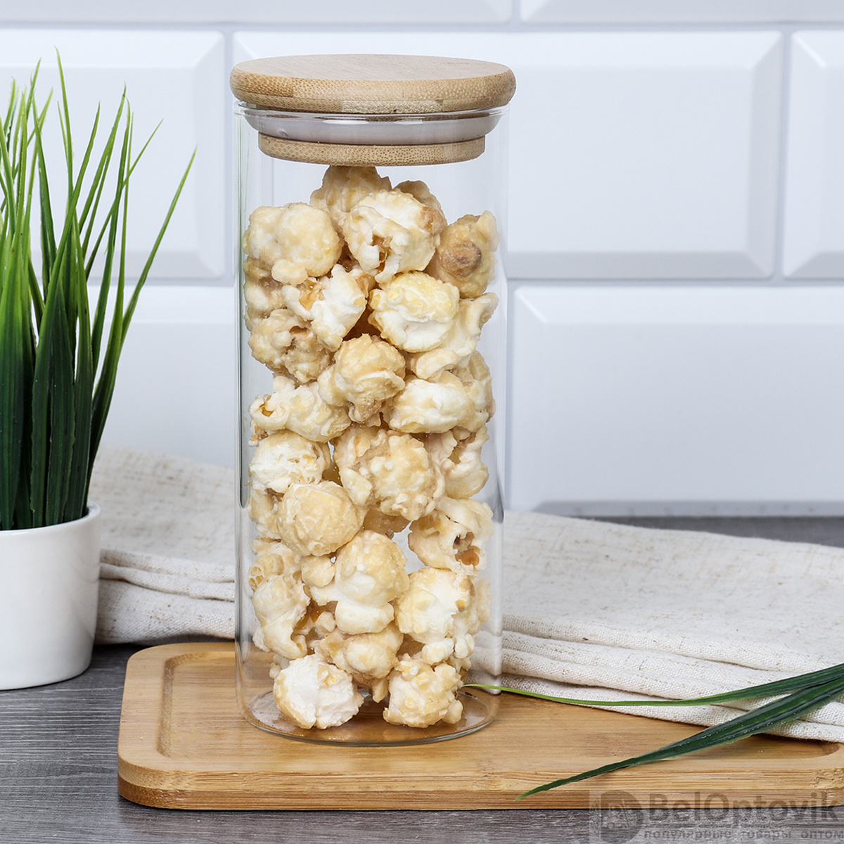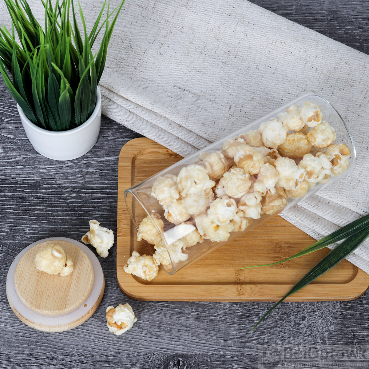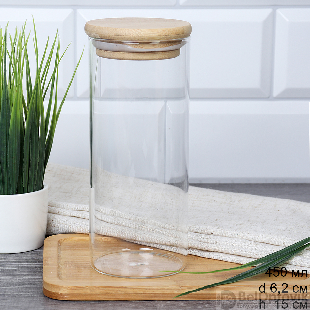 Банка с бамбуковой крышкой объёмом 450 мл — стильный способ хранить крупы, специи или чай. Диаметр 62 мм удобен для использования на кухне.