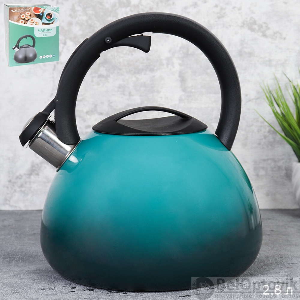 Чайник объемом 2,8 л в бирюзовом двухцветном дизайне станет ярким акцентом на вашей кухне. Быстро нагревает воду и удобен в эксплуатации.