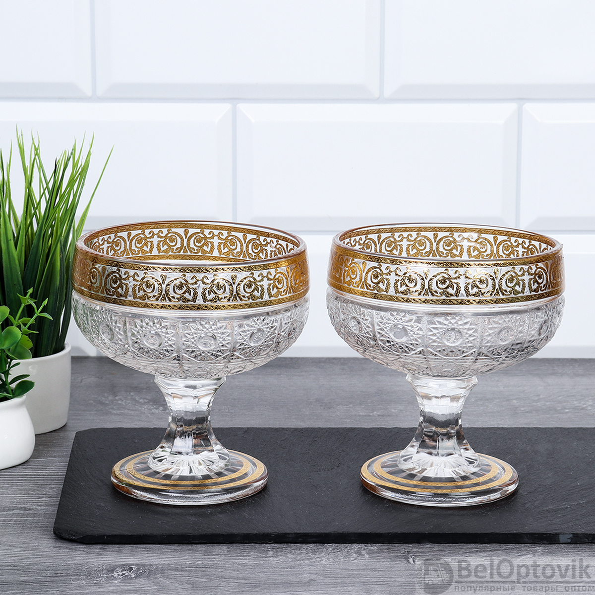 Парные креманки из прозрачного стекла идеальны для подачи муссов, мороженого или фруктовых композиций. Рифленые стенки создают эффект преломления света.