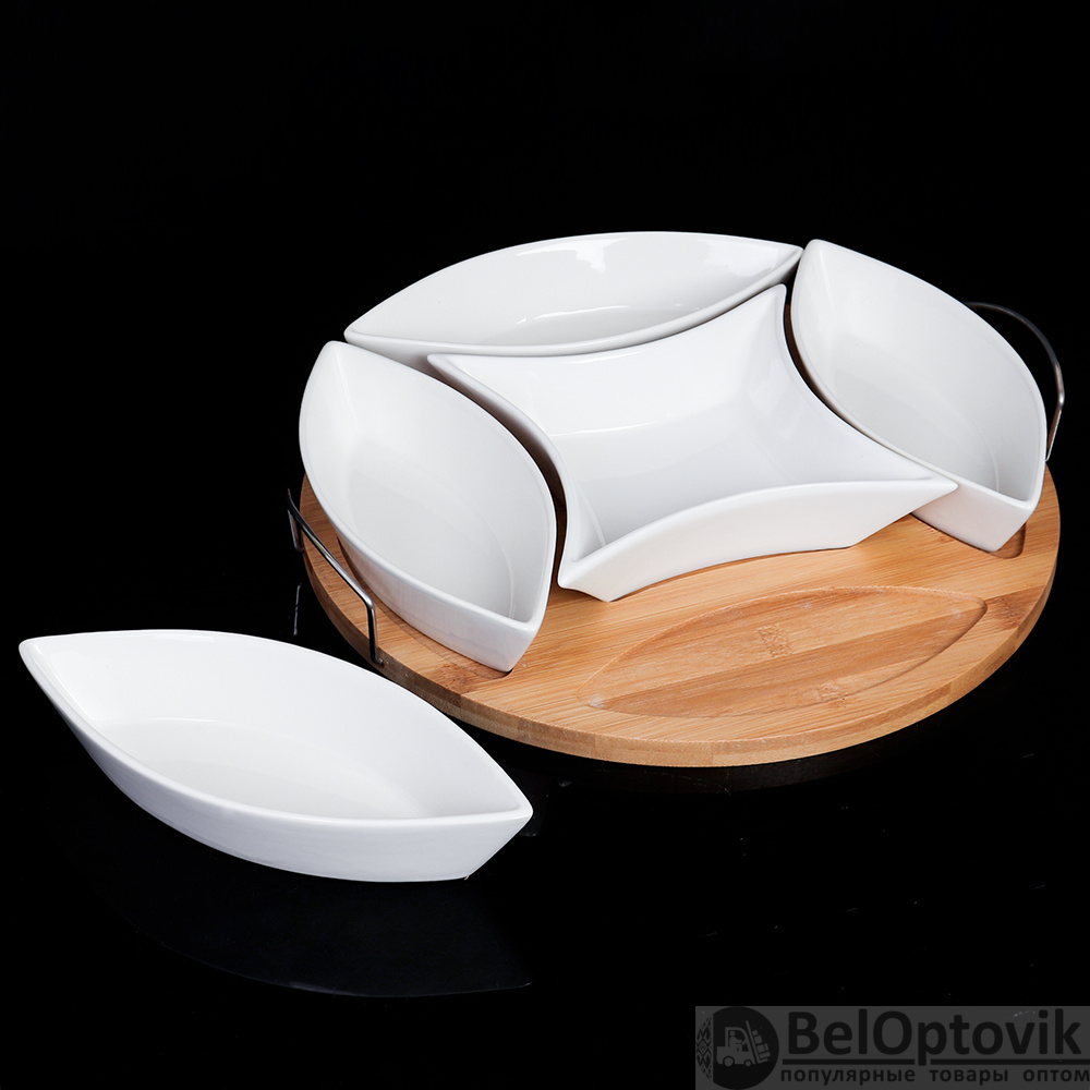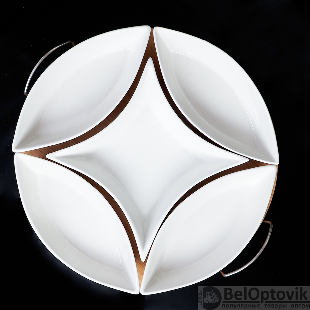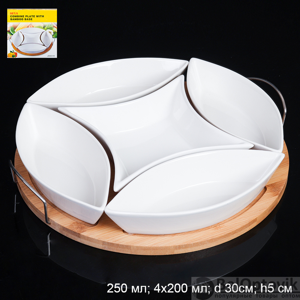 Менажница 5 предметов 4х200 мл,1х250 мл / JD6031B /уп 12/ на деревянной подставке