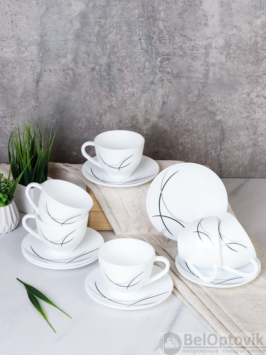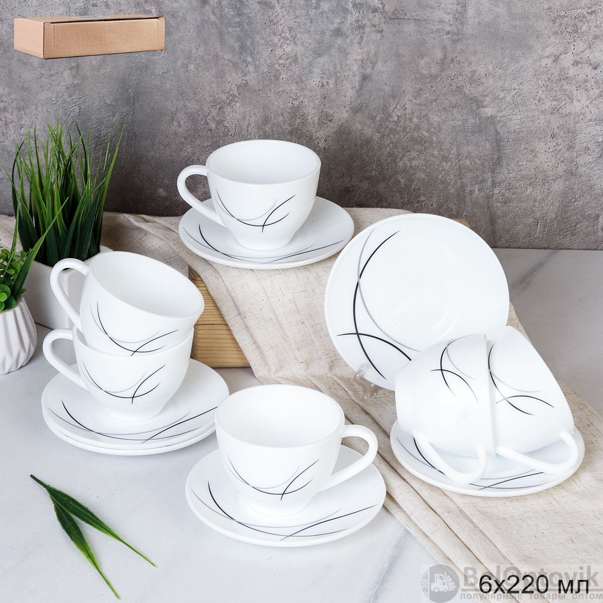 Чайный набор из 12 предметов в классическом дизайне с полосками подойдет для повседневного использования и торжественных мероприятий. Включает чашки и блюдца объемом 250 мл.