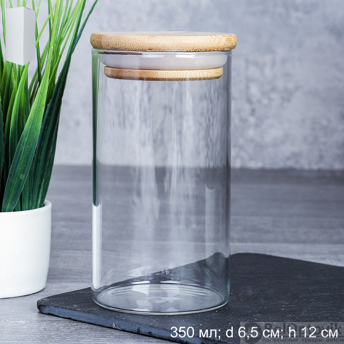 Банка для сыпучих бамбуковая крышка d-65/120 мм 350 мл /GT-35-116/уп160/