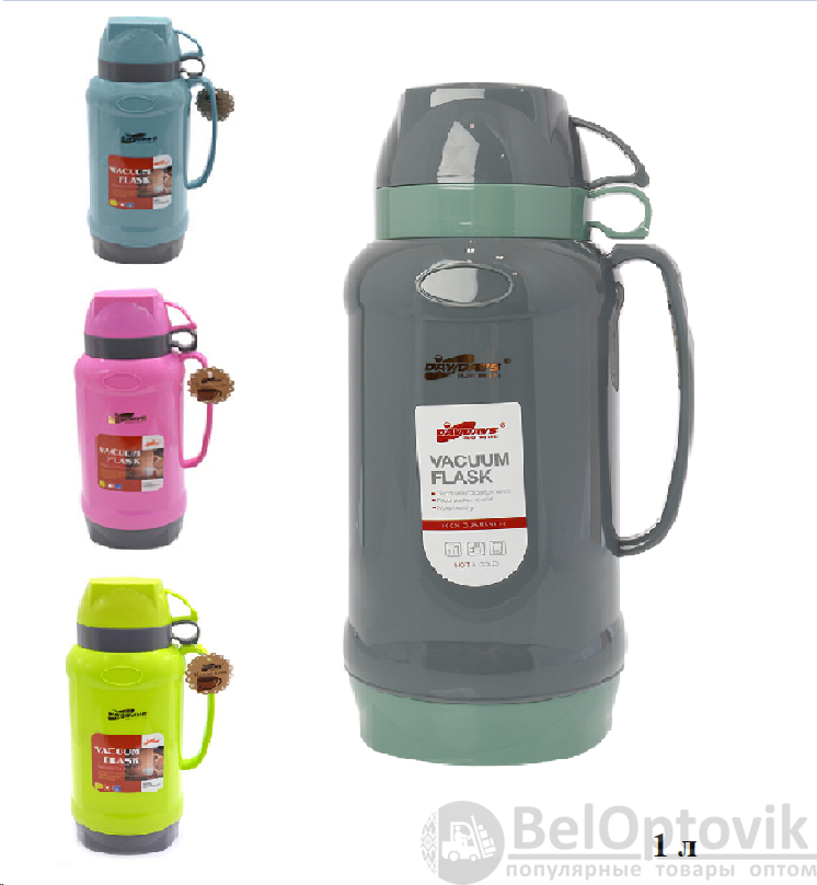 Термос 1 л со стеклянной колбой / 388-100TT /уп 12/ 2 кружки в комплекте