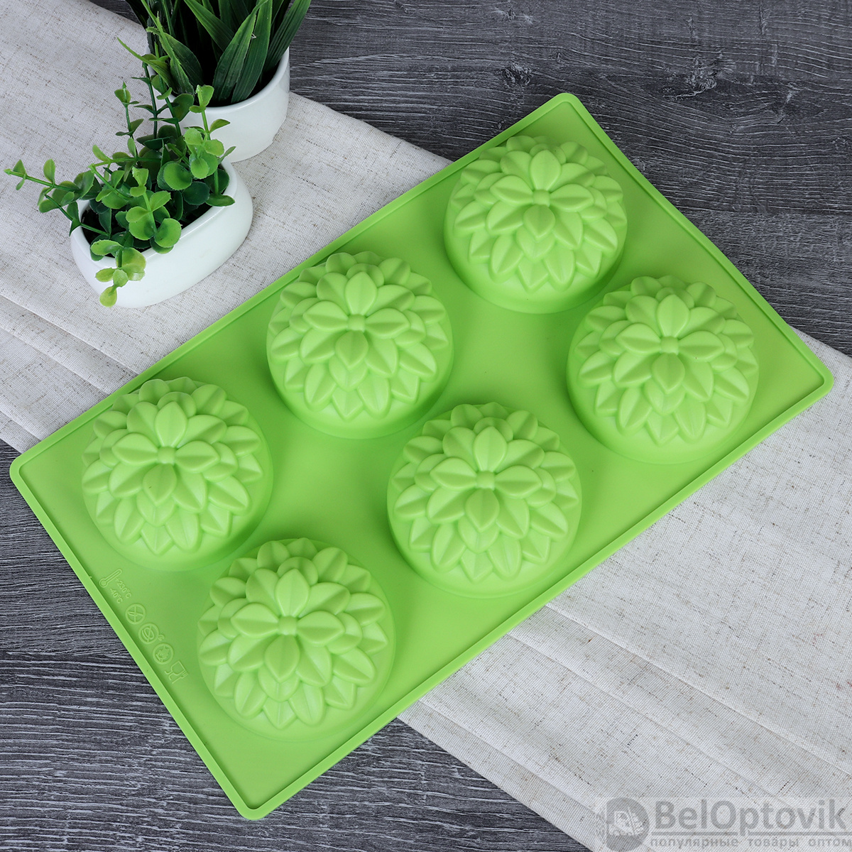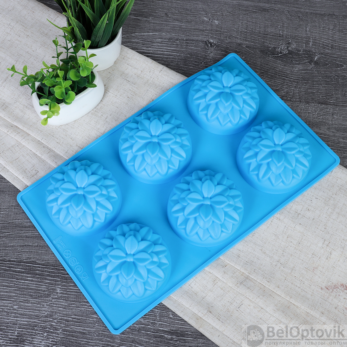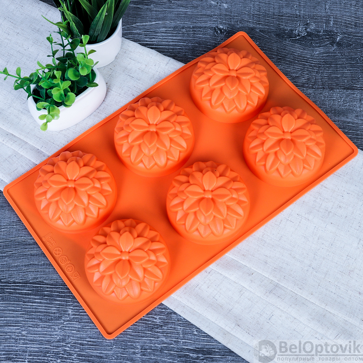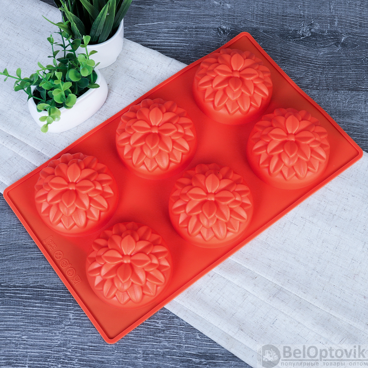 Силиконовая форма с 6 ячейками в виде цветов хризантемы позволяет создавать изысканные десерты. Термостойкий материал выдерживает температуру от -40°C до +230°C.