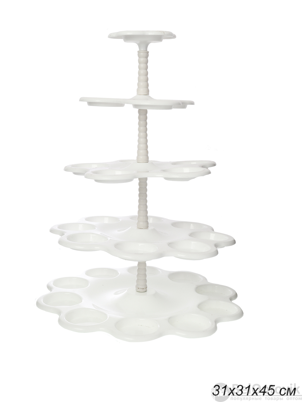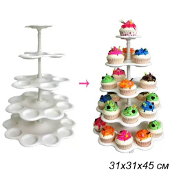 Идеальное решение для презентации десертов на мероприятиях любого масштаба. Пятиярусная конструкция из прочного пластика выдерживает до 45 капкейков или пирожных. Габариты 31×31×45 см позволяют компактно разместить сладости, сохранив эстетику подачи.