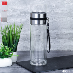 Термос для заваривания чая с ситом 400 мл двойное стекло / HYFL5369 / уп 60/*