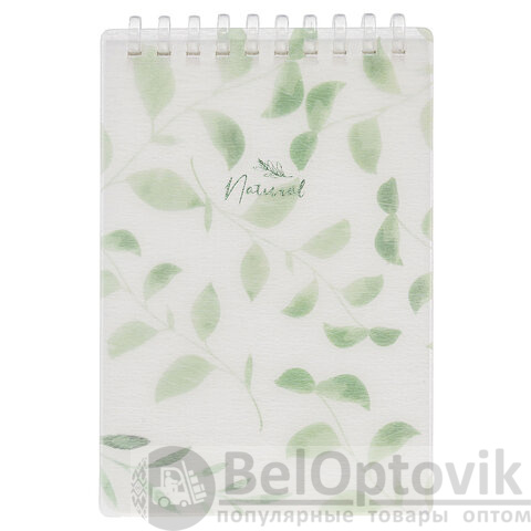 Блокнот МАЛЫЙ ФОРМАТ А6 80л, мягкий гребень, пластик, фольга, клетка, HATBER, NATURAL LEAVES, 090242, 80Б6A1мс_33480