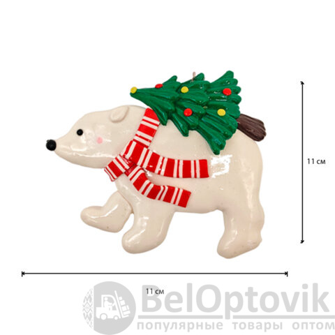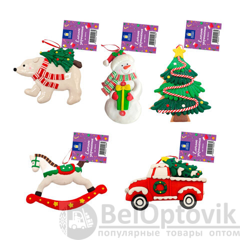 Елочное украшение выполнено в 5 дизайнах (без возможности выбора): белый мишка, очаровательный снеговик, нарядная елочка, лошадка-качалка и везущая праздничную елку машинка. Вы можете собрать целую коллекцию! Любое из этих украшений придаст Вашей ёлке неповторимость и добавит волшебства в праздник!