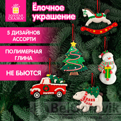 Материал – полимерная глина. Каждое елочное украшение имеет бумажную этикетку и упаковано в воздушно-пузырчатую плёнку для защиты от повреждений.