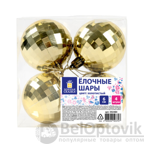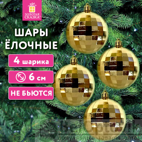 Украшение ёлочное 4 шт., 6 см, "Диско-шар", пластик, золотистый, ЗОЛОТАЯ СКАЗКА, 592484