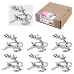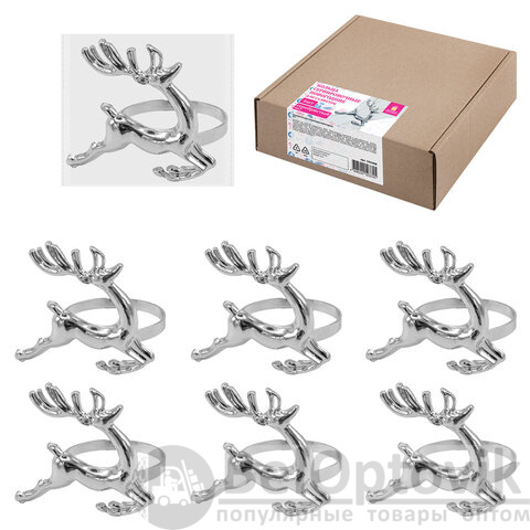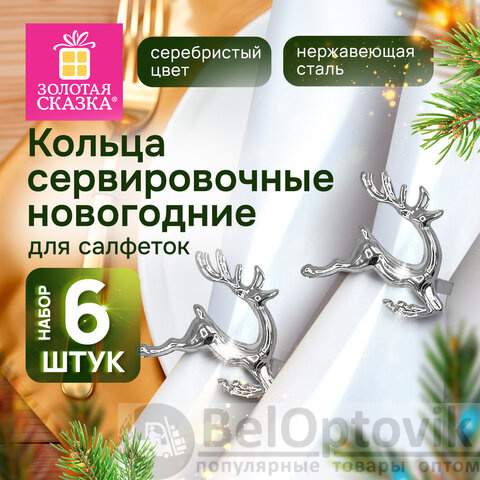 Кольца для салфеток новогодние, КОМПЛЕКТ 6 шт., 5,5 см, "Олени", серебристые, ЗОЛОТАЯ СКАЗКА, 592488