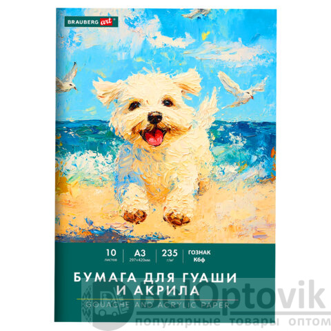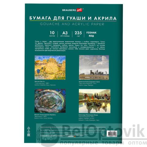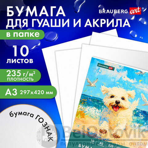 Бумага для гуаши и акрила А3 10 л., 235 г/м2, 297х420 мм, в папке, BRAUBERG ART CLASSIC, "Море", 117734