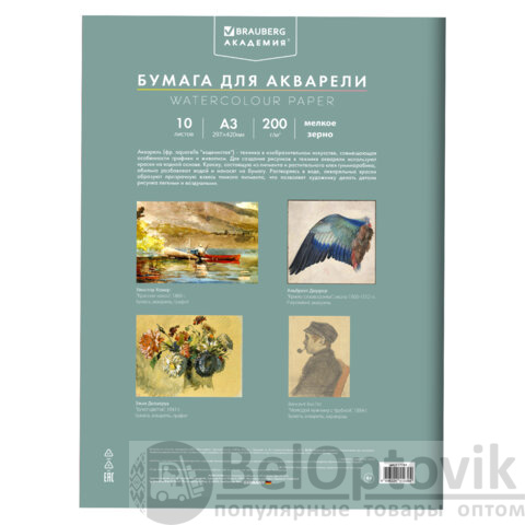 Папка для акварели БОЛЬШАЯ А3, 10 л., 200 г/м2, 297х420 мм, BRAUBERG АКАДЕМИЯ, "Летний натюрморт", 117741
