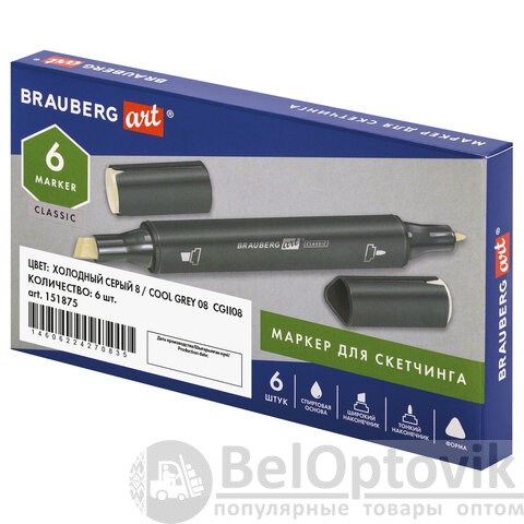 Маркер для скетчинга ХУДОЖЕСТВЕННЫЙ 1 мм - 6 мм BRAUBERG ART CLASSIC, ХОЛОДНЫЙ СЕРЫЙ 8 (CGII08), 151875