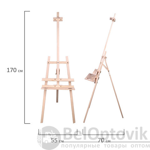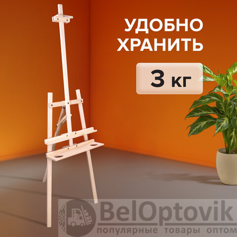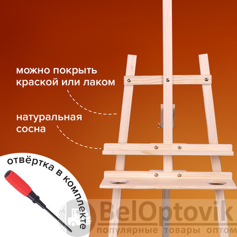 Мольберт напольный из сосны Лира с полкой, 170х55х70 см, высота холста до 107 см, BRAUBERG ART CLASSIC, 192261