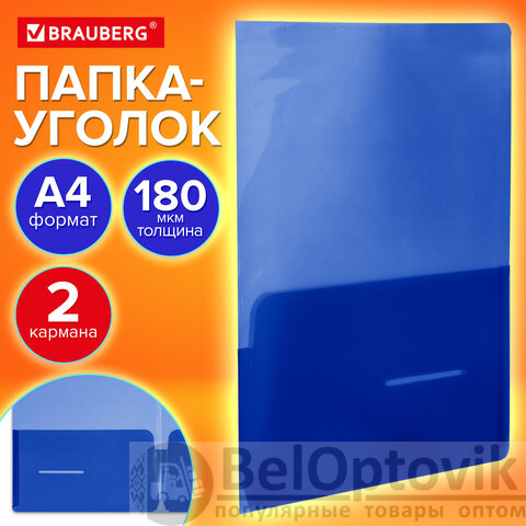 Папка-уголок 2 кармана, непрозрачная, А4, BRAUBERG "SPECIAL", синяя, 0,18 мм, 273060