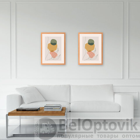 Рамки крупного формата А3 (30х40 см) выполнены из МДФ под дерево в цвете "светлое дерево", за счет чего отлично впишутся как в домашний, так и в деловой интерьер. У каждой рамки имеется возможность вертикального и горизонтального подвеса.
