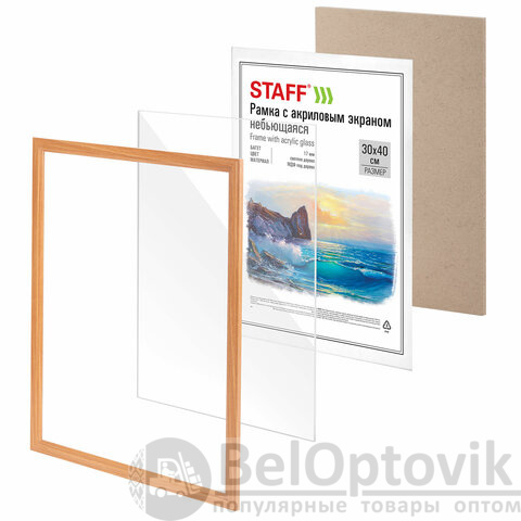 Задняя панель рамок выполнена из переплетного картона, который обеспечивает плотное прилегание и отсутствие в будущем деформации содержимого рамок. Комплект из рамок поставляется в трехслойном гофрокоробе, при этом каждая рамка из комплекта индивидуально упакована в термоусадочную пленку.