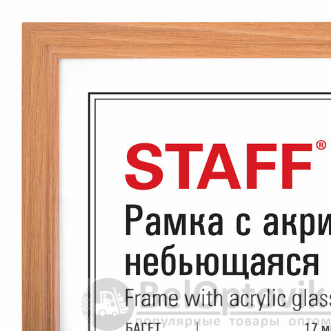 Ширина багета - 17 мм, высота - 14 мм. Вставка из акрила вместо обычного стекла делает рамки менее хрупкими.