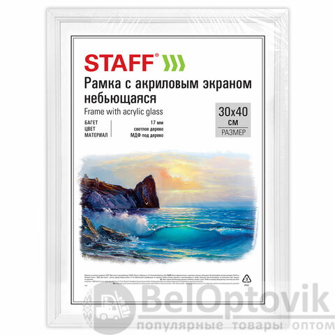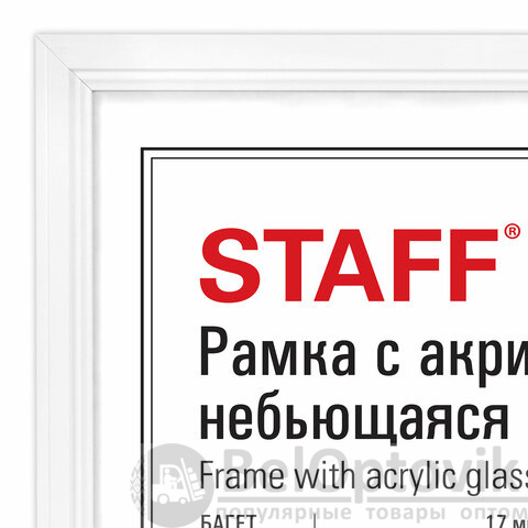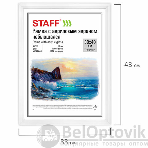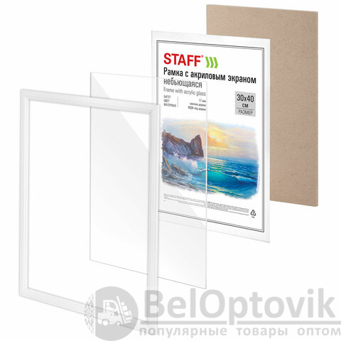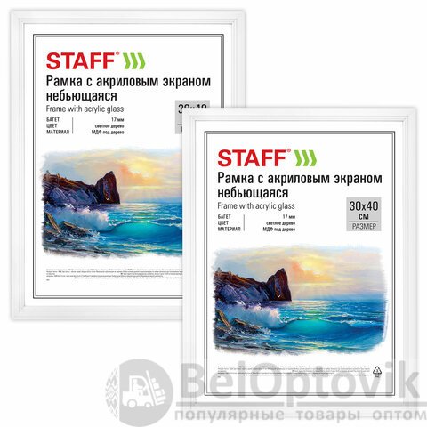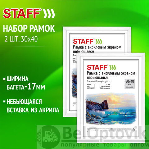 Рамка 30х40 см небьющаяся, КОМПЛЕКТ 2 шт., багет 17 мм, МДФ под дерево, STAFF "Carven", белая, 391329