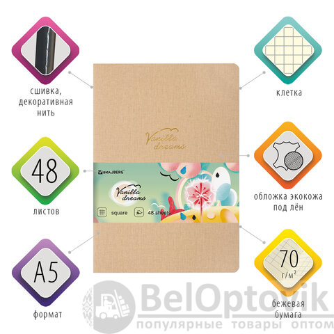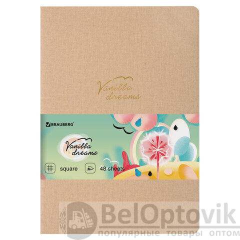 Тетрадь 48 л. в клетку обложка кожзам под лён, сшивка, A5 (147х210мм), БЕЖЕВЫЙ, BRAUBERG PASTEL, 403871