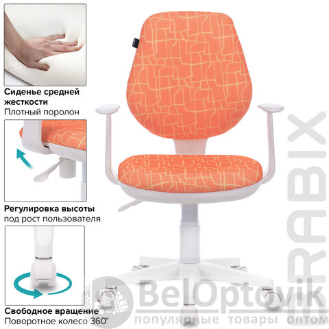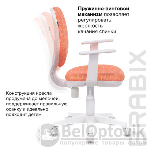Детское кресло BRABIX "Fancy MG-201W" с сочетанием пластиковой основы белого цвета и ярким рисунком. Конструкция кресла продумана до мелочей и максимально безопасна для ребенка.