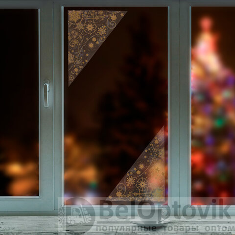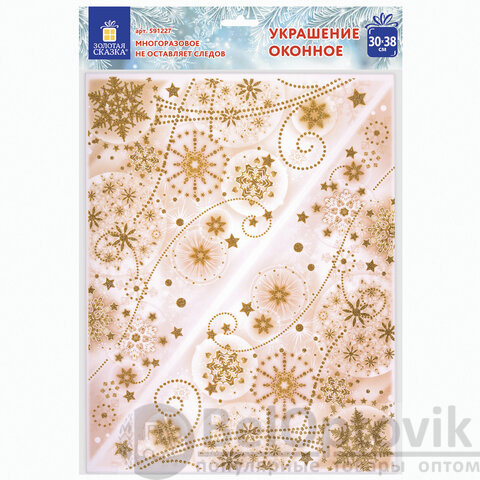 Украшение для окон и стекла ЗОЛОТАЯ СКАЗКА "Узоры из золотых снежинок 1", 30х38 см, ПВХ, 591227