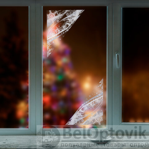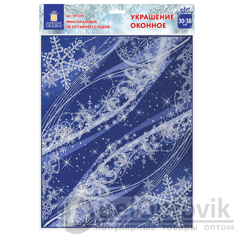 Украшение для окон и стекла ЗОЛОТАЯ СКАЗКА "Зимние узоры 4", 30х38 см, ПВХ, 591246