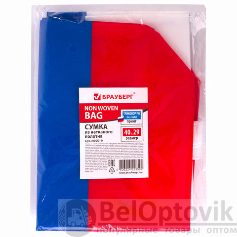 Сумка "Флаг России" триколор, 40х29 см, нетканое полотно, BRAUBERG, 605519, RU39