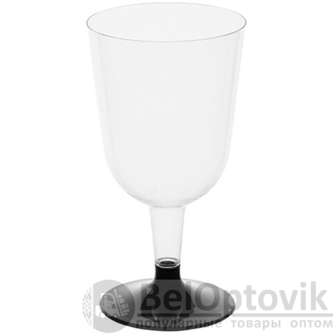 Бокал одноразовый 200 мл, для вина, пластиковый, черная низкая ножка, ВЗЛП, 1011П/Ч