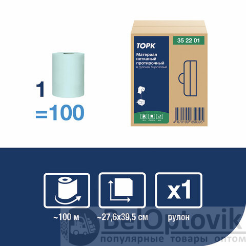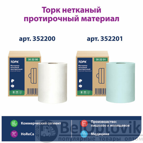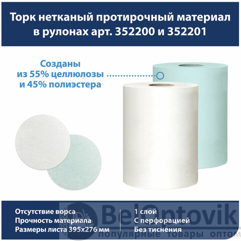 Протирочный нетканый материал TORK Advanced, 253 листа в рулоне, 39,5х27,6 см, бирюзовый, 352201